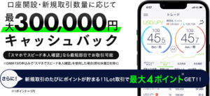 DMM FXの新規口座開設+お取引で最大300,000円キャッシュバックキャンペーンがあります。